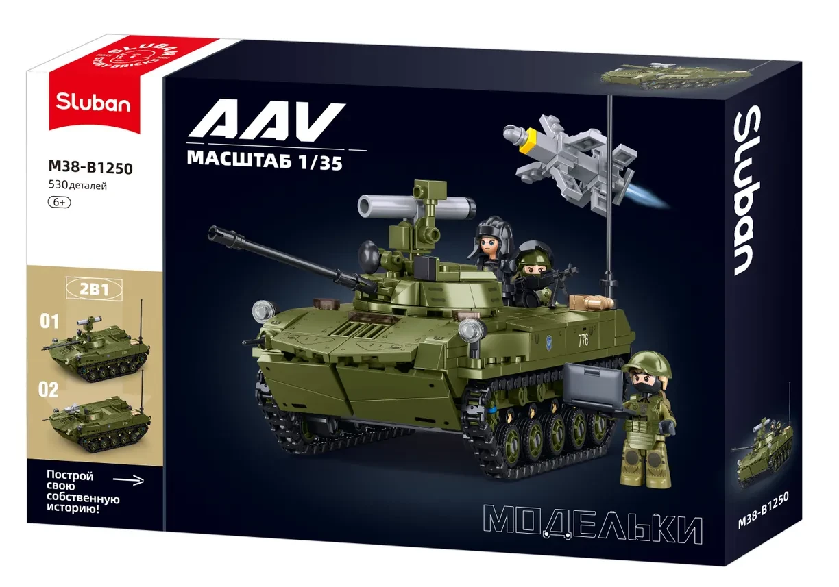 Конструктор Sluban M38-B1250 позволит ребенку самостоятельно собрать реалистичную модель гусеничной и плавающей российской десантной машины БМД-2, которую можно использовать для игр и коллекционирования. Детали конструктора выполнены из ABS-пластика. В набор входят три фигурки, что даст возможность разыгрывать различные сценарии.