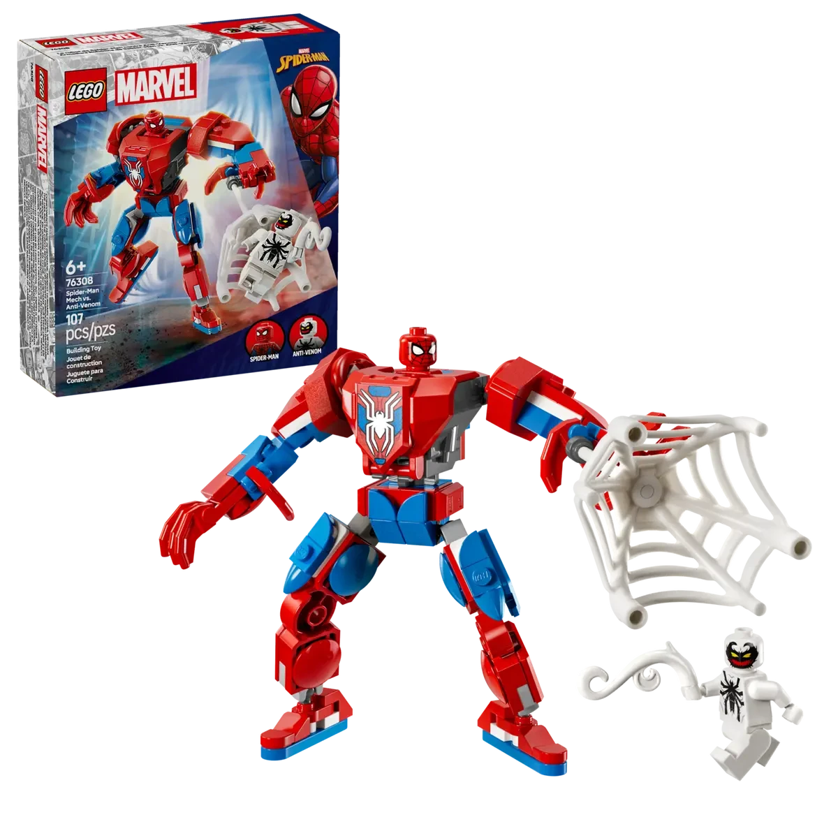 «Робот Человека-паука против Анти-Венома» (76308) — это идеальная сборная супергеройская игрушка LEGO® для детей, которые любят огромных роботов, минифигурки и приключения из фильмов Marvel. Этот качественный игровой набор LEGO Marvel с полностью подвижной сборной фигуркой Человека-паука подарит юным супергероям в возрасте от 6 лет бесконечные творческие приключения. В этот игровой набор LEGO Marvel входят две минифигурки: Человек-паук и Анти-Веном с руками-щупальцами. У сборного робота подвижные руки, ноги и пальцы. Дети открывают туловище робота, чтобы поместить в кабину минифигурку Человека-паука. В наборе есть большая гибкая паутина, в которую можно поймать минифигурку Анти-Венома, и ее поместить в руки как минифигурке, так и роботу.Чтобы сборка была еще интереснее, строители могут увеличивать, поворачивать модели в 3D и отслеживать свой прогресс с помощью веселого и интуитивно понятного приложения LEGO Builder.